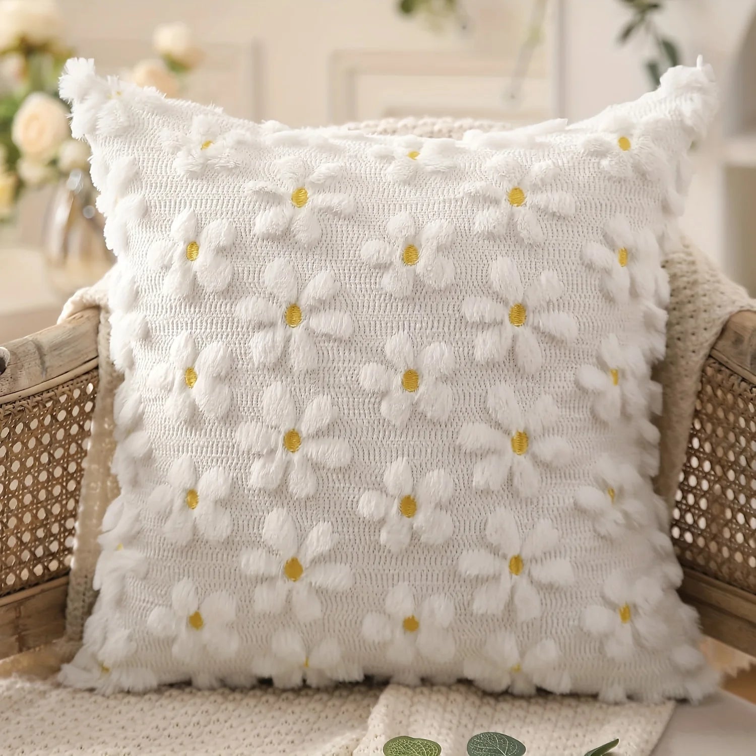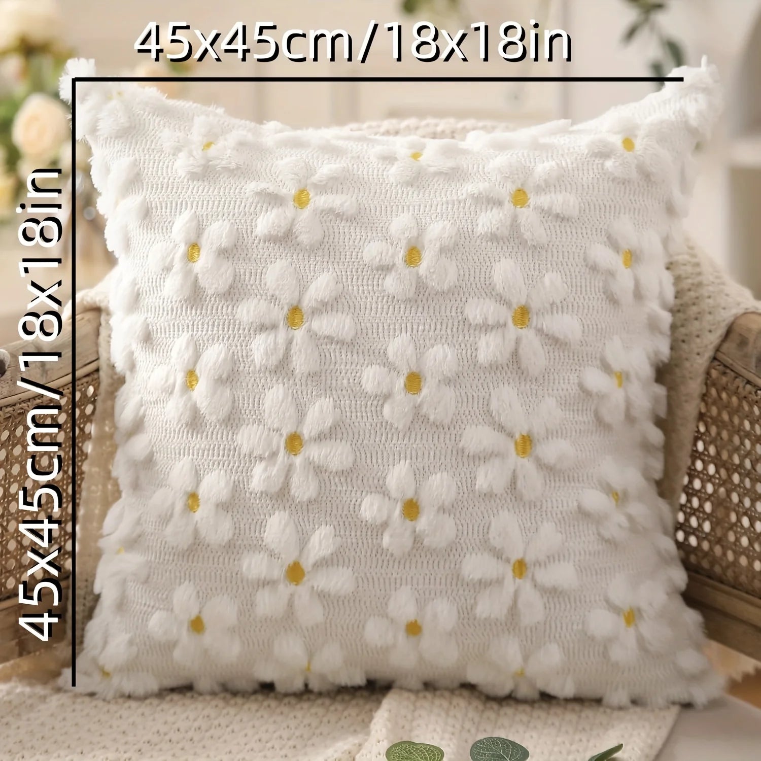 The Daisy Bloom™ Cushion Cover instantly refreshes your space with delicate textured flowers and subtle yellow details that brighten any sofa, bed, or reading corner. Its soft jacquard fabric adds depth and comfort while keeping a clean, elegant look.
